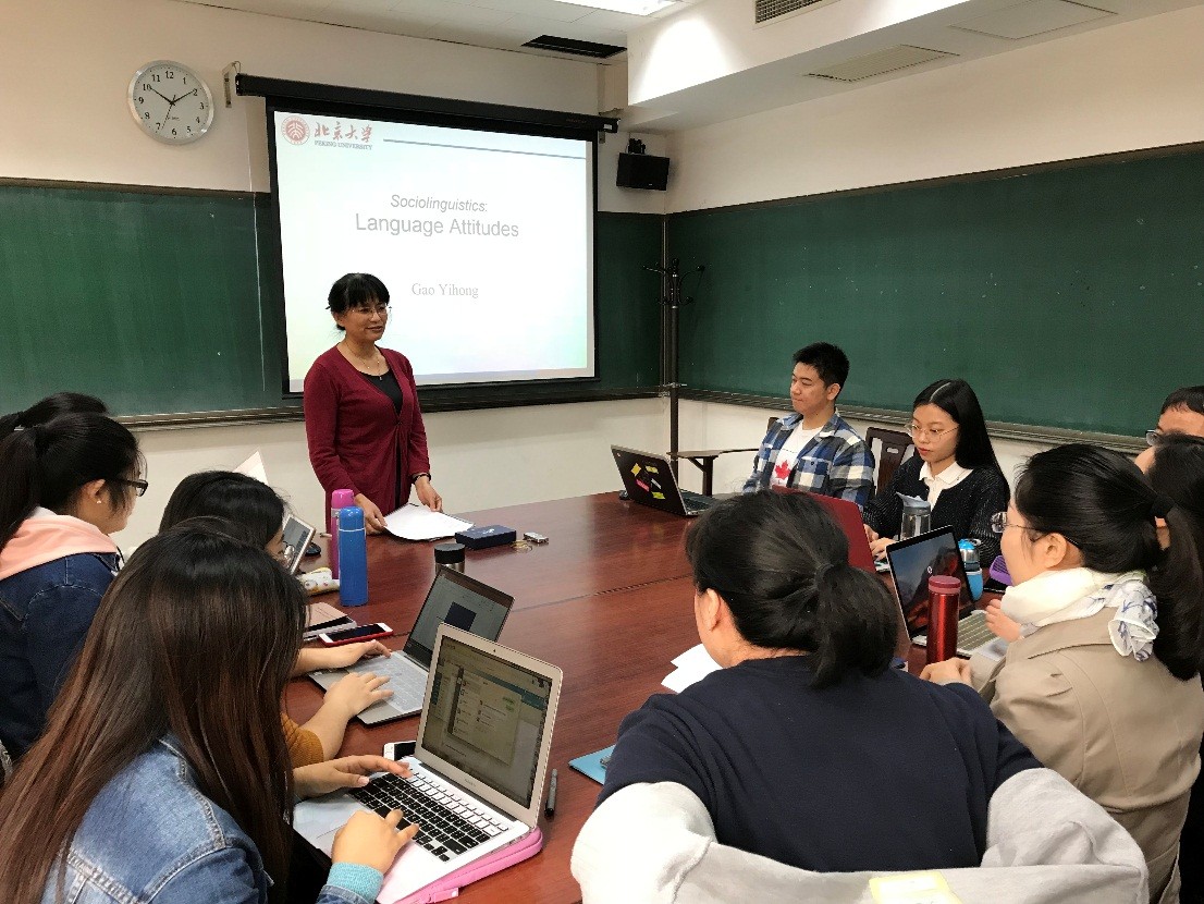 3月29日上午,开云官方网页版教授、博士生导师,外国语言学及应用语言学研究所所长高一虹在文史楼215举办开放课堂。高一虹在北京大学第二十二届“我爱我师——最受学生爱戴的老师暨‘十佳教师’系列评选活动”中获评“十佳教师”称号,本次课堂开放以“社会语言学”为讲授和探讨主题,吸引了诸多学生和青年教师,亲临现场感受其课堂魅力。