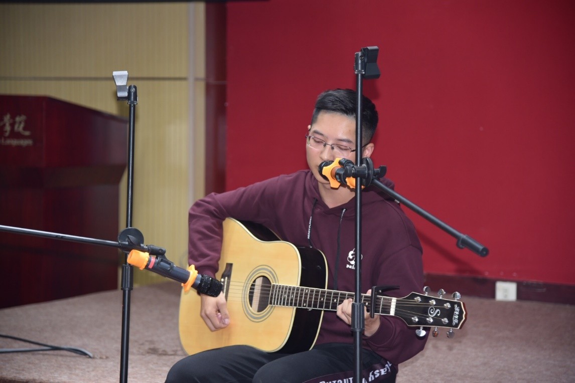 此外,晚会呈现的个人节目环节也是亮点频出、精彩纷呈。德语系新生姚以升以一首《月光》勾起了同学们对家乡的思念,印度尼西亚语系尹楷珺和俄语系管小淳则联手带来一首《少年游》。韩语系的吴加琪、熊泽伦随后演唱了改编版《余生坠落》,伴着吉他,用RAP将晚会推向了高潮。新生们用精彩的个人表演充分地展现了青春昂扬、朝气蓬勃的面貌。