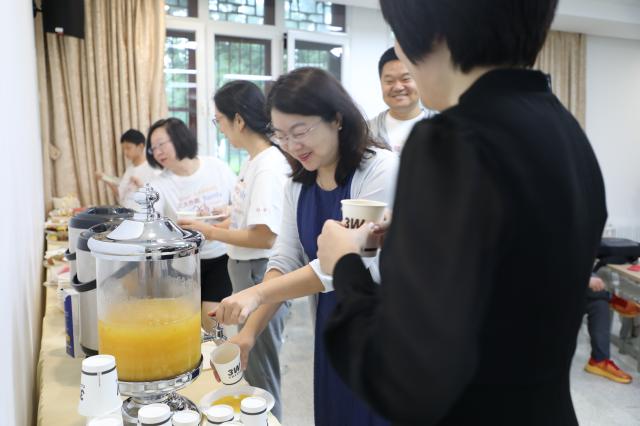 在校友到达之前,外文楼103室早已布置下了丰富的茶歇,为校友们接风洗尘,拂去阴雨天的阴翳,让校友们重温外院的温暖。
