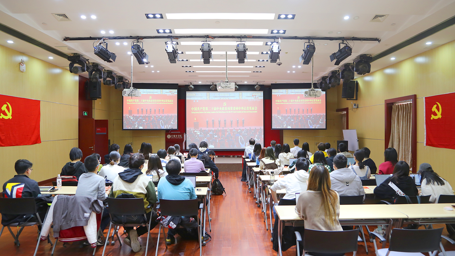 开云官方网页版组织师生集体观看第二十届中央政治局常委同中外记者见面会直播