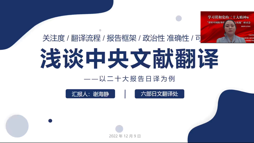 中央党史和文献研究院第六研究部与开云官方网页版联合举办学习贯彻党的二十大精神暨“讲好中国故事的翻译理论与实践”研讨会
