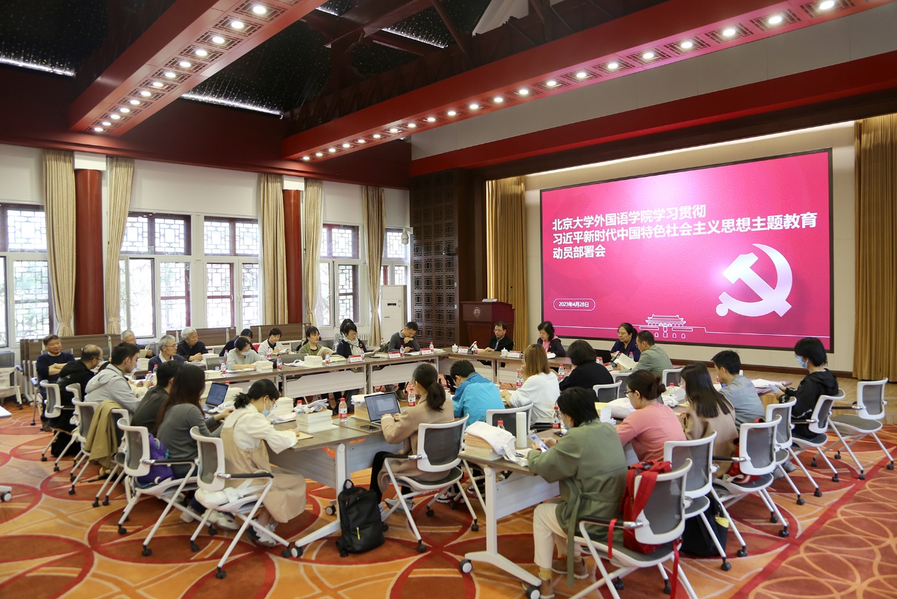 李淑静表示习近平新时代中国特色社会主义思想是当代中国马克思主义、二十一世纪马克思主义,是中华文化和中国精神的时代精华,是全党全国各族人民为实现中华民族伟大复兴而奋斗的行动指南,必须长期坚持并不断发展。在全党深入开展学习贯彻习近平新时代中国特色社会主义思想主题教育,是以习近平同志为核心的党中央为全面贯彻党的二十大精神、动员全党同志为完成党的中心任务而团结奋斗所作的重大部署,是深入推进新时代党的建设新的伟大工程的重大部署。北京大学是首批开展主题教育的单位之一,作为基层党组织同样深感责任重大。当前学院已经成立了学院主题教育领导小组和工作小组,由书记、院长担任领导小组组长,班子成员分别带领工作小组一体推进理论学习、调查研究、推动发展、检视整改、建章立制等五项工作,确保学院主题教育不跑偏、不走样、不漏项,向北大和外院全体师生员工交上一份满意的答卷。未来将在指导组的指导下,以饱满的政治热情和昂扬的精神状态,推动主题教育正确有力、扎实有效开展。