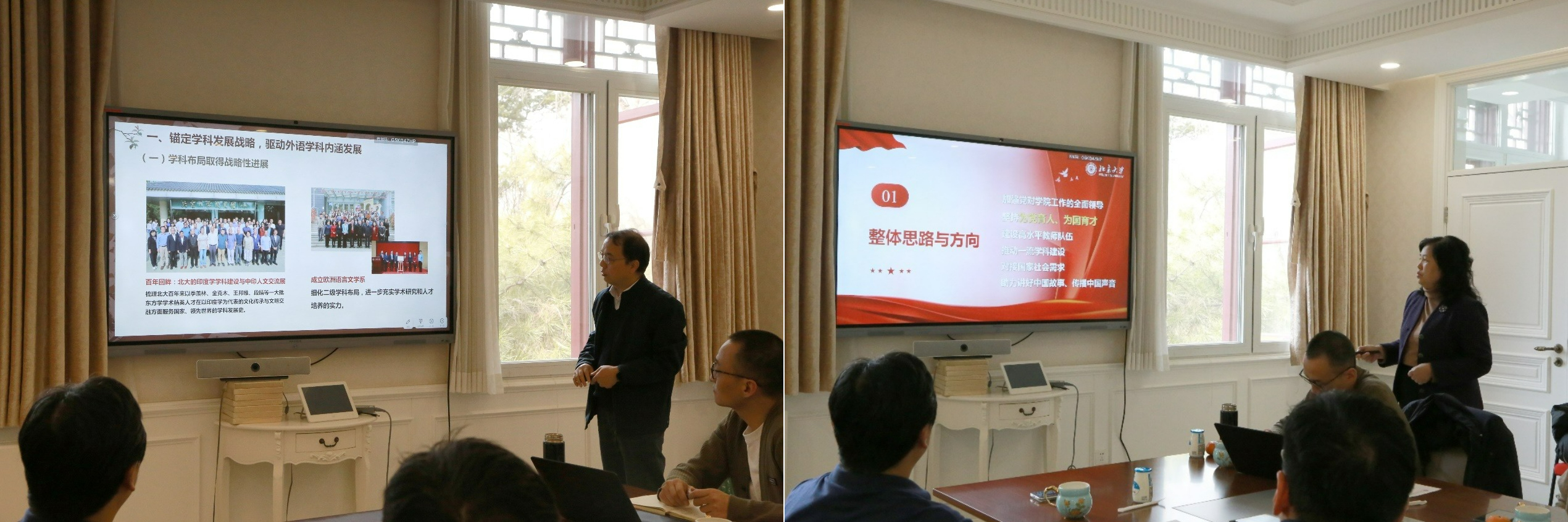 陈明与李淑静分别介绍学院与学院党委近期工作重点