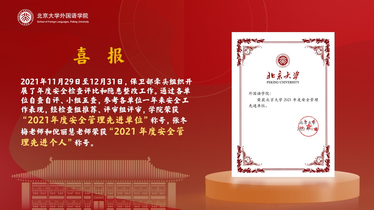 开云官方网页版荣获北京大学2021年度安全管理先进单位
