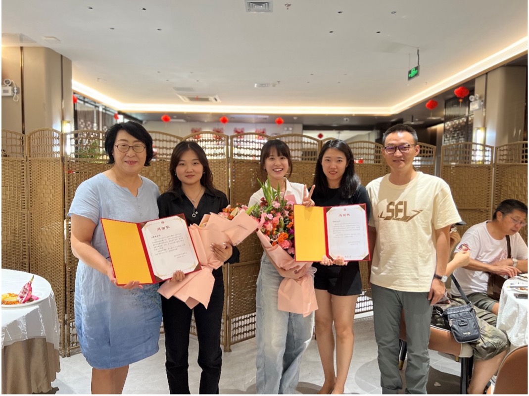 本学期,2022届选留辅导员熊珊儿、杜姝格即将离任,王乃懋与2024届选留辅导员杨蕊嘉、杨溢加入外院行政大家庭。党委副书记张冬梅与副院长王恒为熊珊儿、杜姝格送上鲜花和感谢状。学院为新同事准备了迎新礼物,欢迎三位老师的加入。